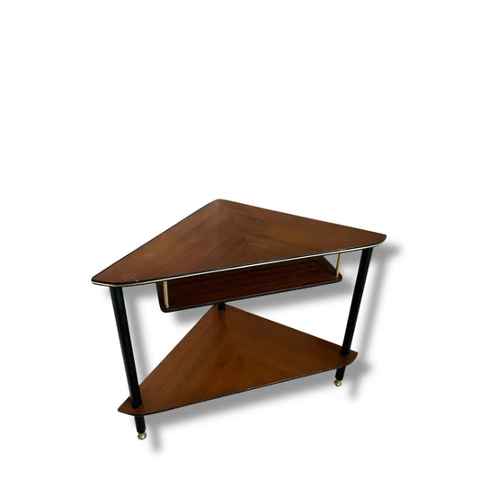 Mid Century Modern Formica and Teak Triangular Corner Shelf Unit