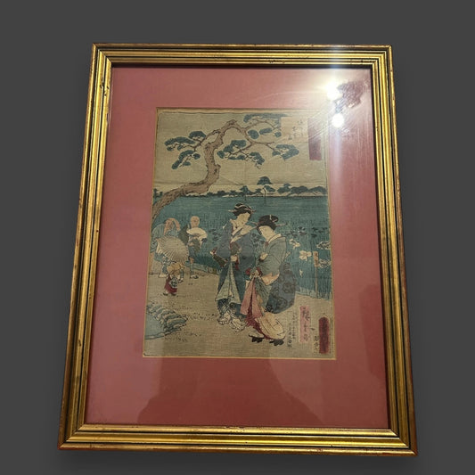 Antique Chinoiserie Mirror | Blue & Gold Gilt Painted Rectangular Wall Mirror