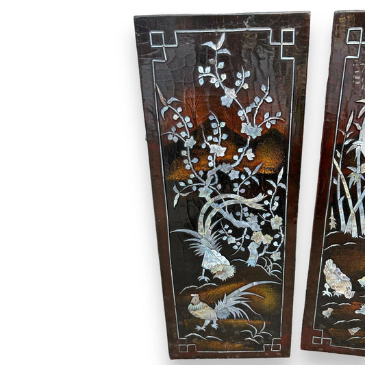 Antique Set of 3 Mother of Pearl Iridescent Wall Panels