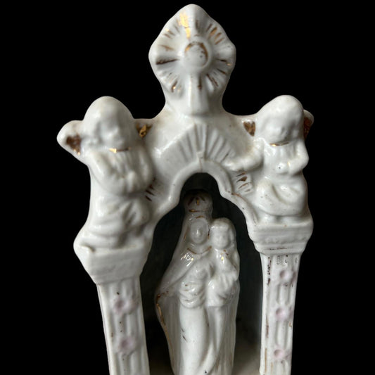 Antique Madonna Holy Water Font Porcelain Sculpture