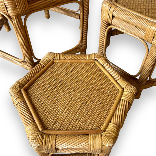 mid century set of 3 bamboo hexagonal tables