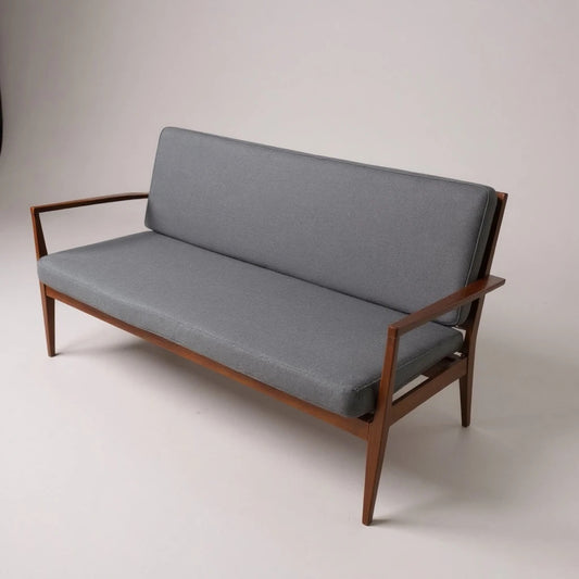 Ole Wanscher Three-Seat Sofa – Mid-Century Danish Modern Teak Frame & Blue Upholstery
