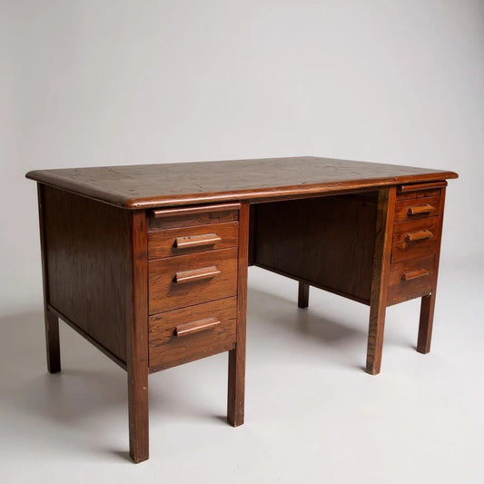 Vintage 1940s Abbess Oak Teacher’s Desk – Double Pedestal School Desk