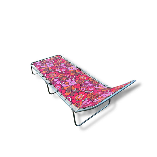 Vintage 1970s Folding Sun Lounger | Retro Floral Garden Chair | Space Age Outdoor Recliner | Boho Deck Chair with Psychedelic Print