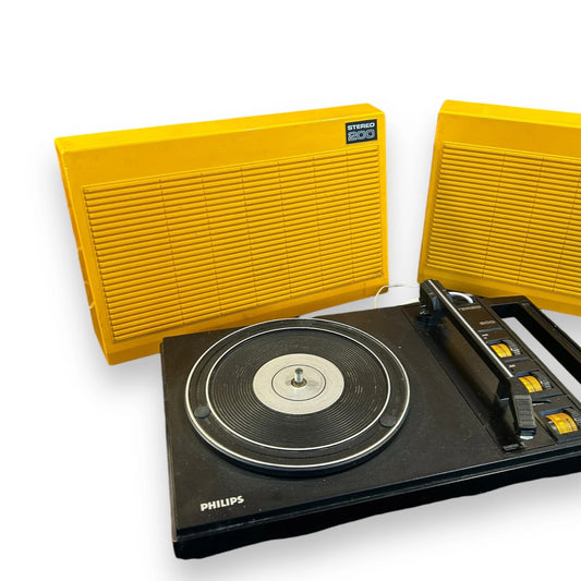 Vintage 1970s Philips 200 Yellow Portable Record Player