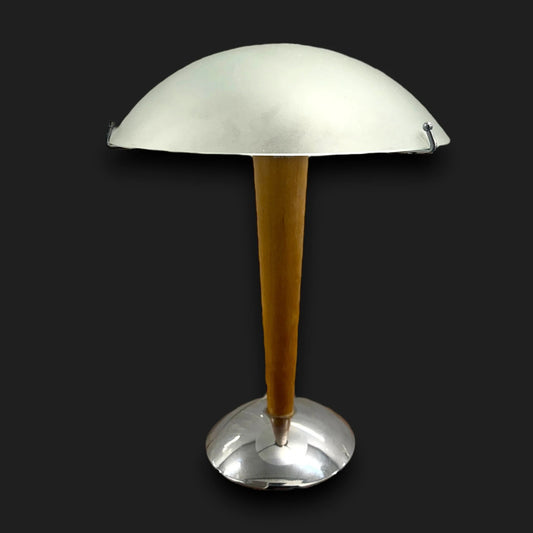 Vintage 90s Ikea Glass and Wood Rocket Style Table Lamp