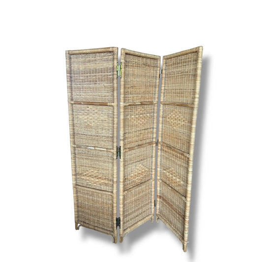 Vintage Bamboo Room Divider | Rattan Folding Screen | Mid Century Boho Partition