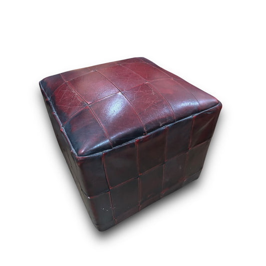 Vintage Pair of Danish Patchwork Leather Cube Ottoman Footstools