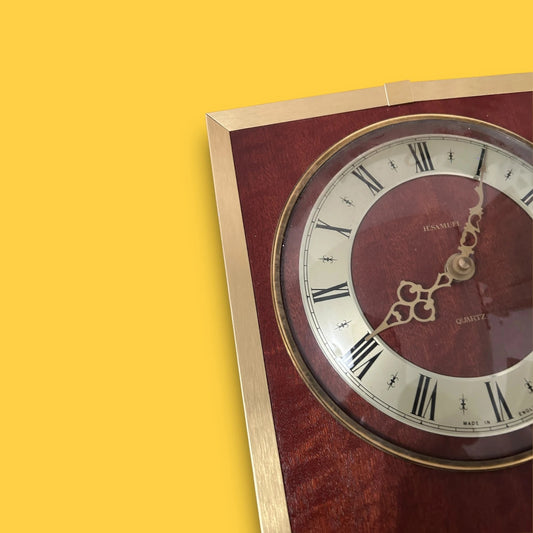 Mid Century Brass and Wood Tempora Table Clock