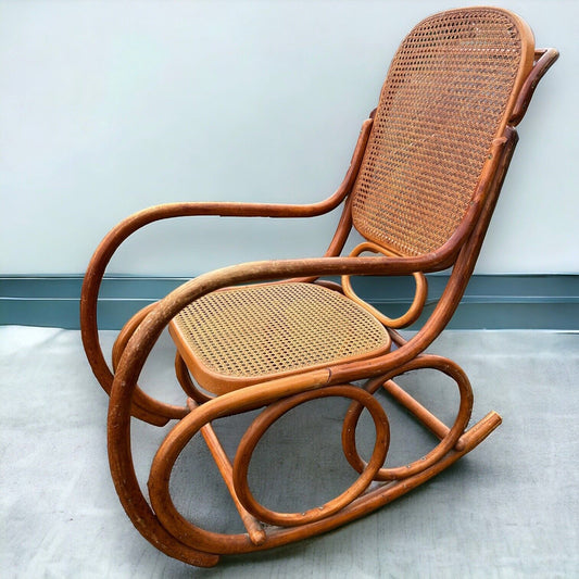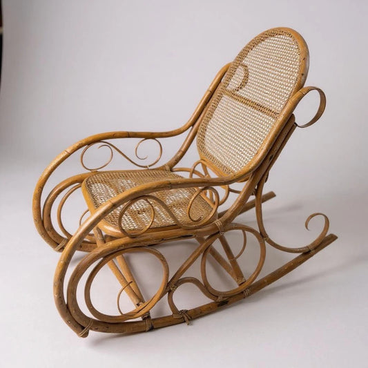Mid Century Bamboo & Rattan Rocking Chair | Vintage Boho Wicker Rocker