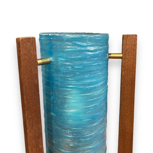 Mid Century Blue Fibreglass & Teak Rocket Table Lamp
