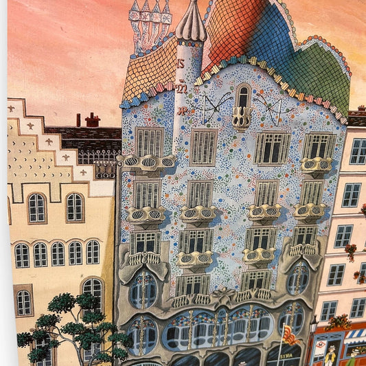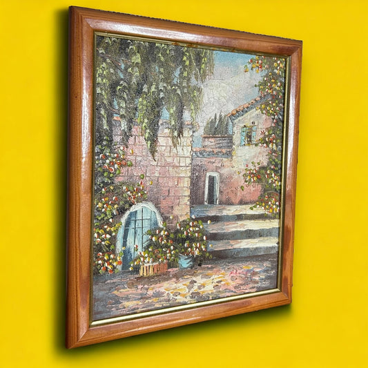 Vintage 1970s Mediterranean Nature Scene Art Painting