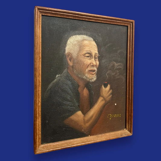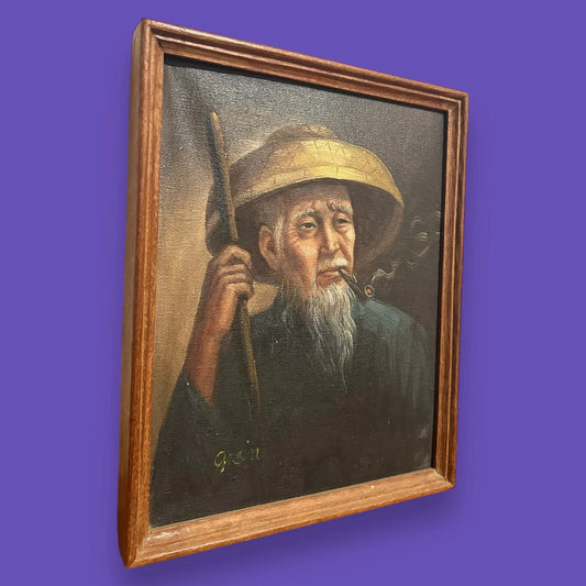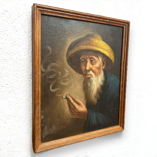 Vintage 1970s Chinese Old Man Art Oil Painting