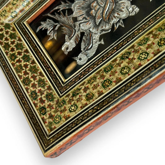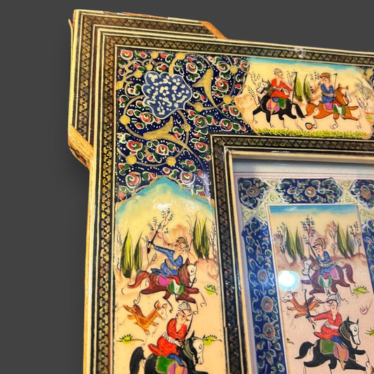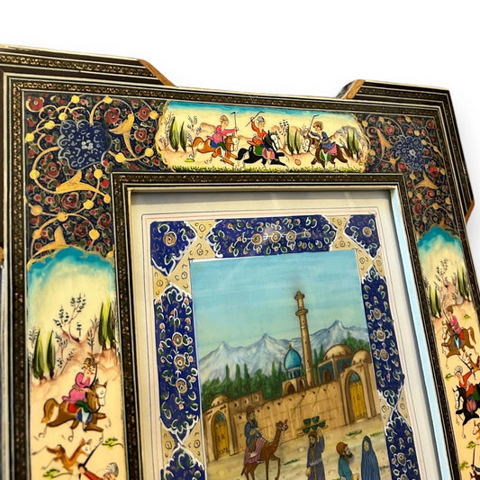 Vintage 1950s Persian Khatam Watercolour Framed Art