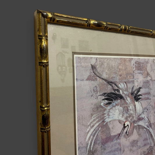 Vintage 1970s Chinese Crane Bamboo Picture Frame