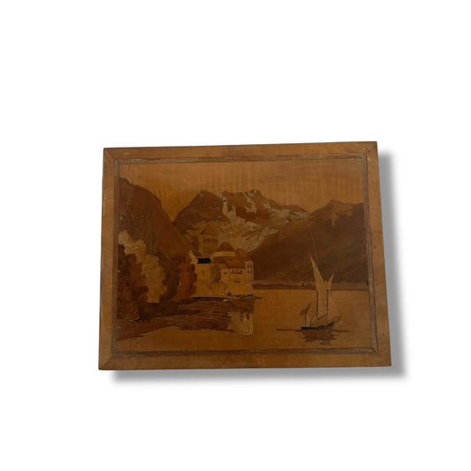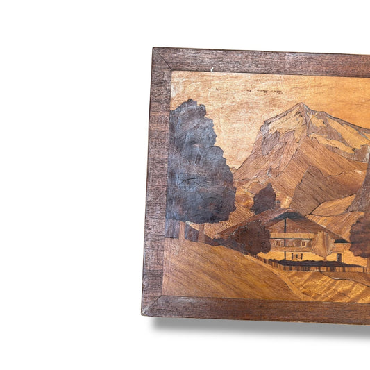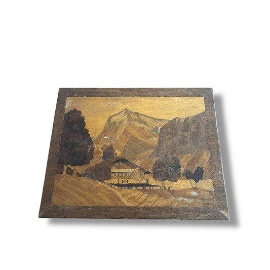 Vintage Boxwood Marquetry Panel | Scottish Landscape Wall Art
