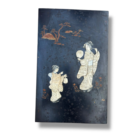Vintage 1930s Chinese Mother of Pearl Inlay Panels | Antique Hand-Carved Wood Wall Art
