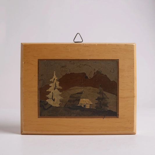 Mid Century Modern Teak Wood Marquetry Landscape Picture