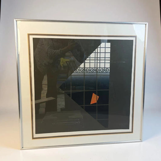 Mid Century Modern Surrealist Abstract Framed Window Artwork