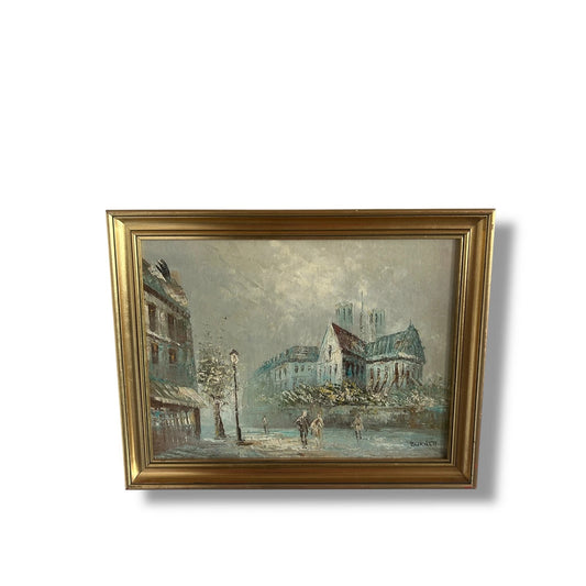 Vintage 1930s Parisian Scene Oil Painting Artwork by Caroline Burnett