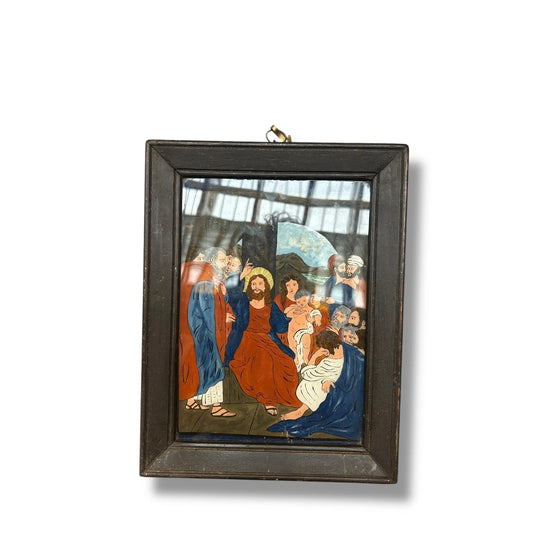Vintage Reverse Glass Painting of Jesus | Religious Christian Art