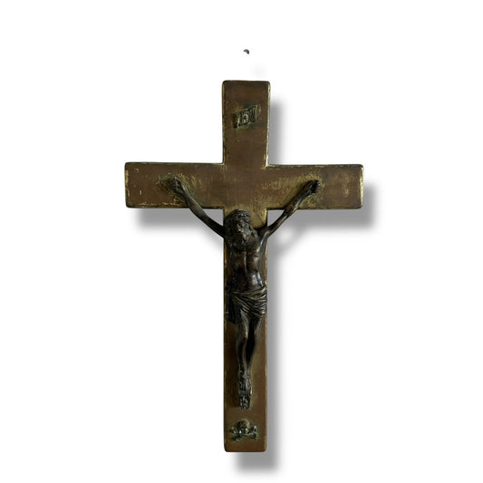 Antique Large Brass Jesus Christ Crossbones Crucifix
