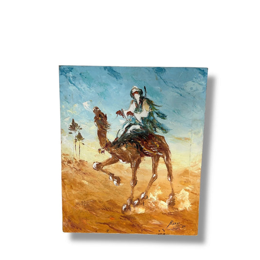 Vintage 1980s Middle Eastern Desert Art oil painting