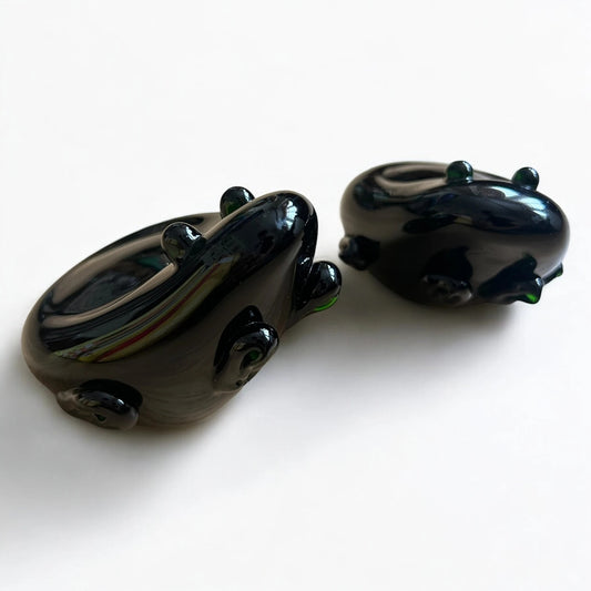 Mid Century Modern Emerald Green Glass Frogs Art Sculpture
