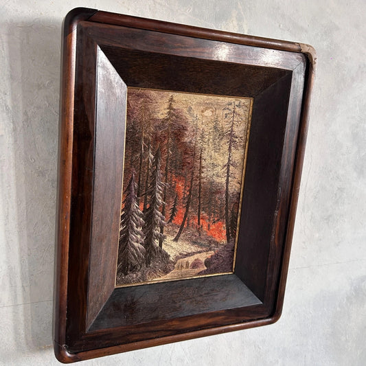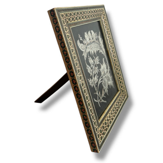 Mid Century Khatam Carved Wood Mosaic Persian Copper Art Frame
