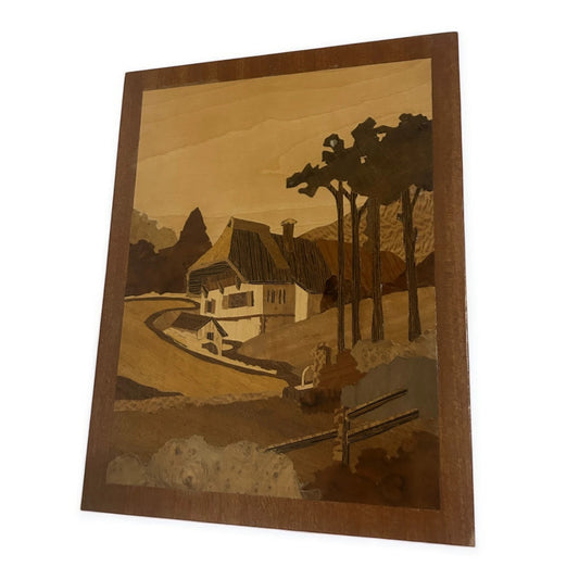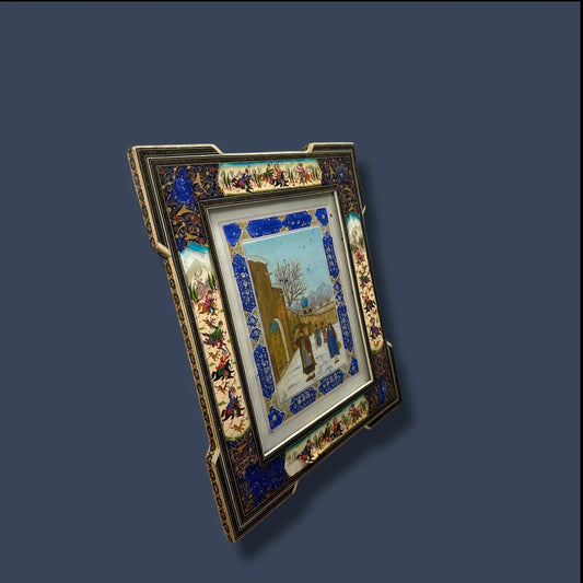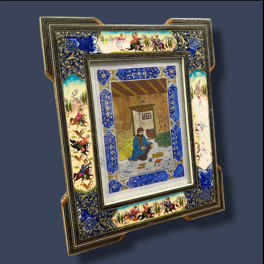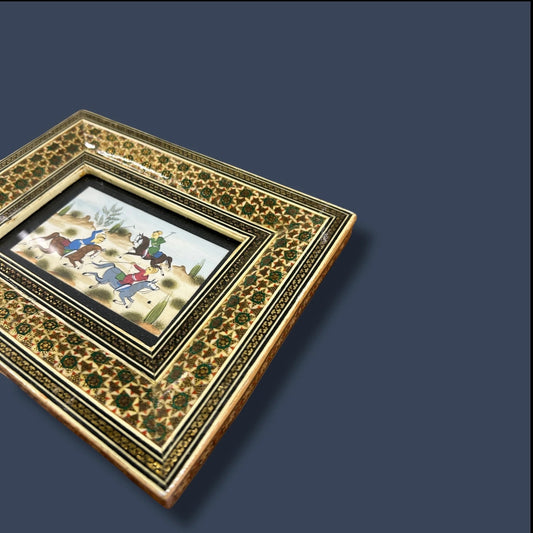 Vintage 1950s Persian Khatam Mosaic Watercolour Painting
