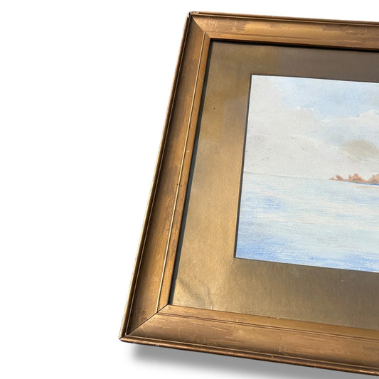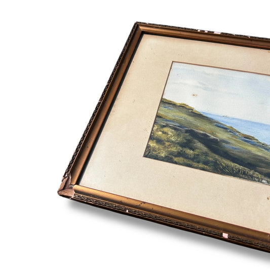 Vintage 1950s Coastal Landscape Watercolour Painting