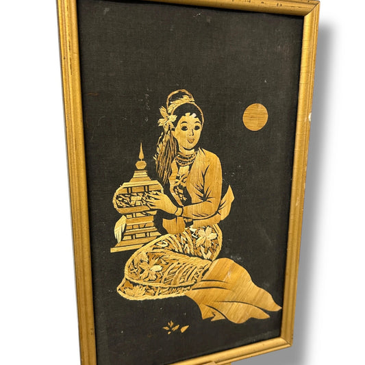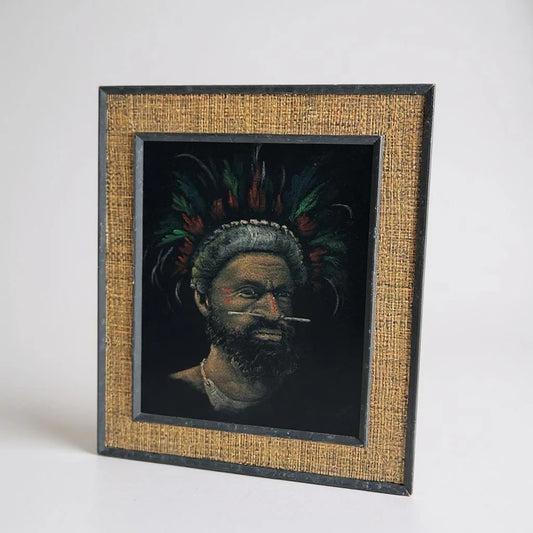 Mid Century Modern Tribal African Warrior Art Painting Bamboo Jute Frame