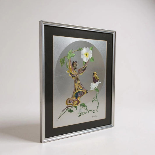 Mid Century Modern Michelle Emblem Poppy Fairy Foil Art Painting