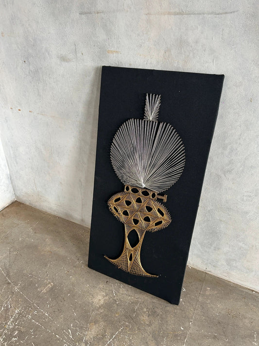Mid Century Modern Black and Gold Oil Lamp String Artwork