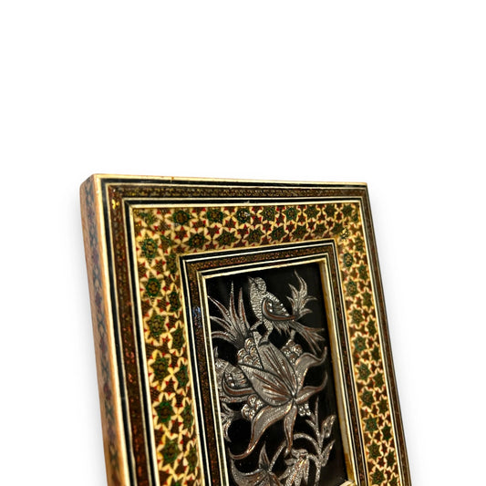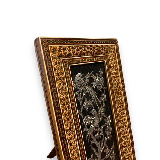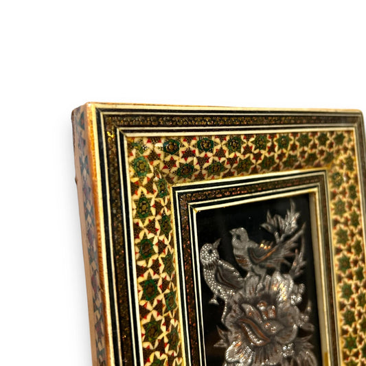 Vintage 1960s Persian Khatam Mosaic Copper Framed Art