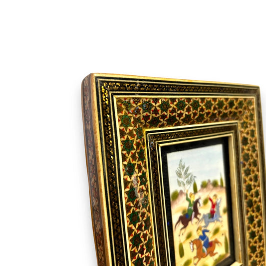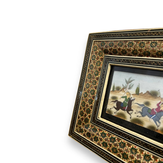 Vintage 1960s Persian Khatam Battle Scene Framed Painting