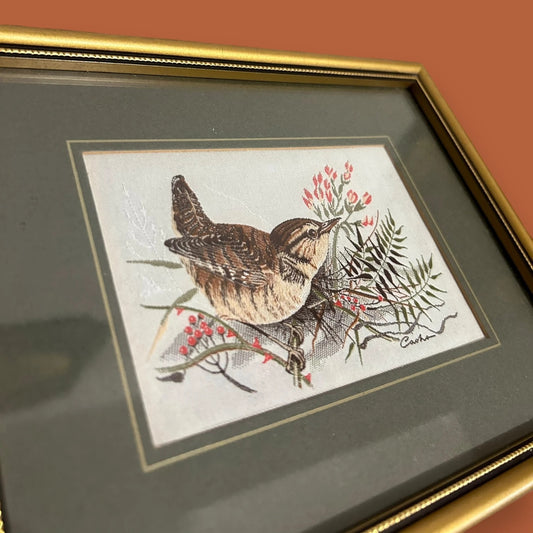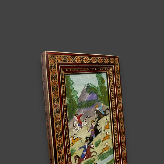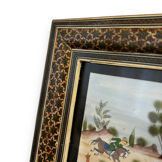 Vintage 1960s Persian Khatam Watercolour Framed Painting