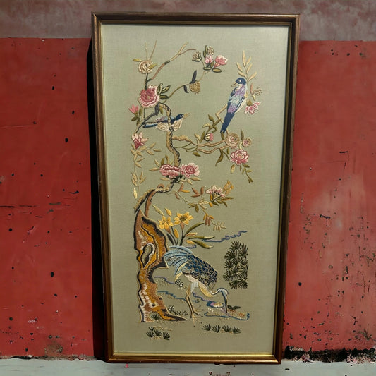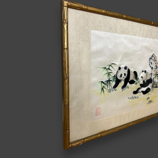 Vintage 1960s Chinese Pandas Silk Tapestry