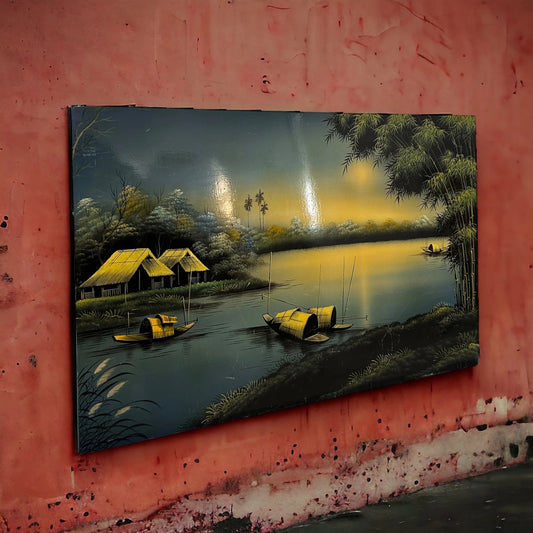Vintage 1970s East Asian Eggshell Lacquer Wall Panel