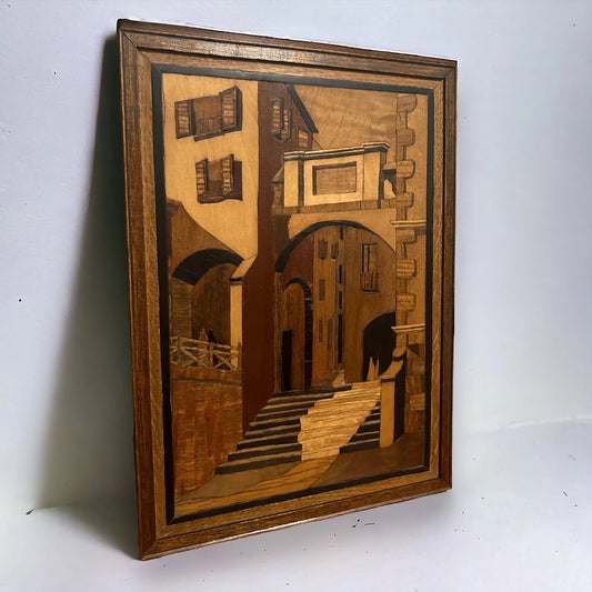 Vintage 1970s Inlaid Wood Marquetry Picture Frame