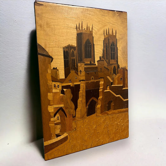 Vintage 1950s Persian Khatam Mosaic Watercolour Painting