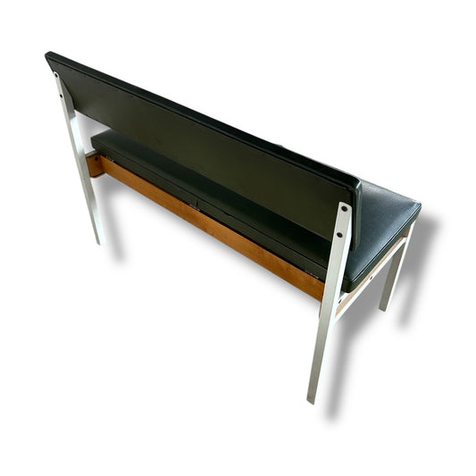 Mid Century Dark Green Metal and Wood Storage Bench