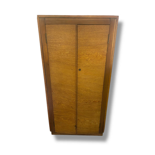 Mid Century Oak & Walnut Storage Cabinet – Vintage Cupboard with Shelves | Compact Side Unit