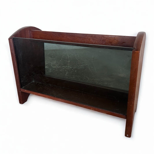 Mid Century Teak Wood Vinyl Storage Smoked Glass Magazine Rack