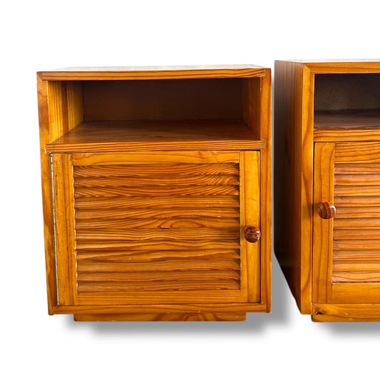 Mid Century Modern Pair of Teak Wood Slatted Bedside Cabinets