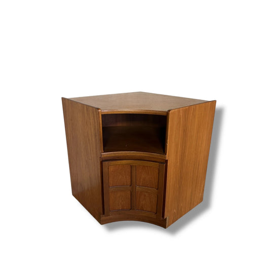 Mid Century Modern Nathan Squares Panelling Teak Corner Cabinet