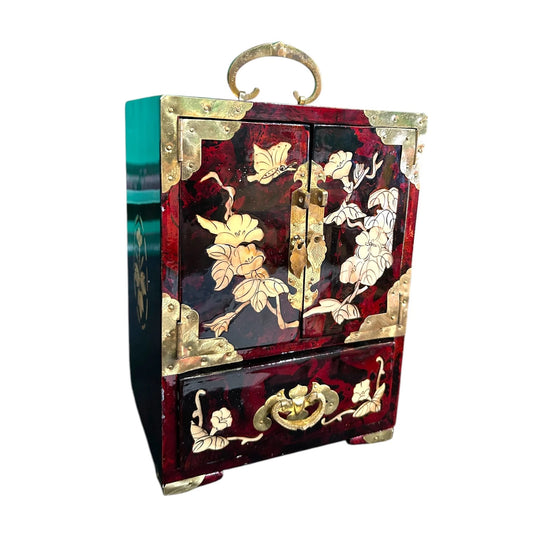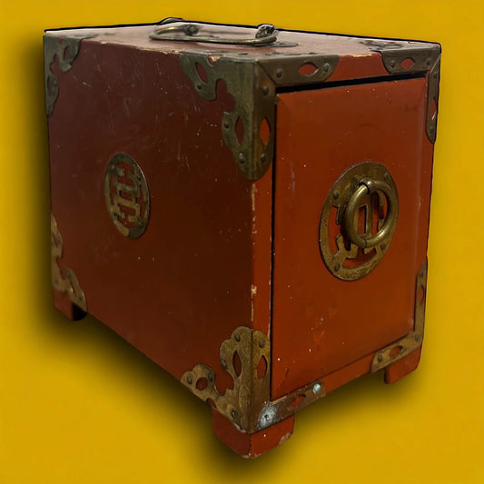 Mid Century Chinese Wood and Brass Storage Cabinet
