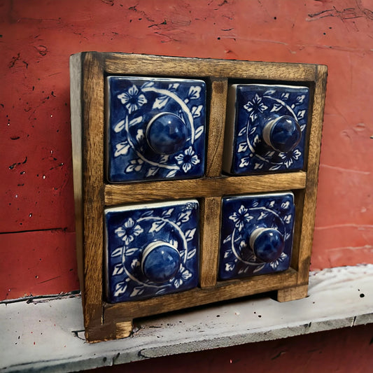 Vintage 1970s Indian Blue and White Cabinet Drawers