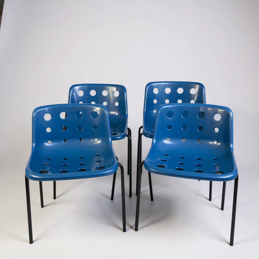 Set of 4 Robin Day Hille Polo Chairs | Mid-Century Modern British Design | Royal Blue Dining Chairs