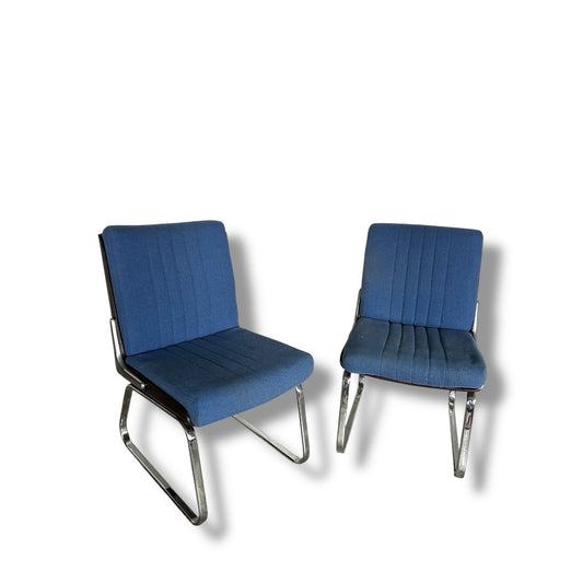 Vintage Gordon Russell Verco Chairs – Pair of Mid Century Modern Blue Chrome Dining Chairs, Retro 1970s Cantilever Seating